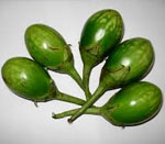 -Unthorny stem and leaf. -Fruit colour green with light green stripes and slight purple tinge. -Fruiting pattern clusterous. -Fruit calyx green &unthorny. -Days to first picking 60-65 days. -Average fruit weight 55-70 gm. -Transport quality good. |